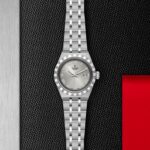 Corona di carica a vite in acciaio decorata con il logo TUDOR in rilievo