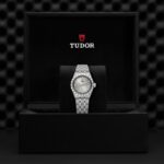Corona di carica a vite in acciaio decorata con il logo TUDOR in rilievo