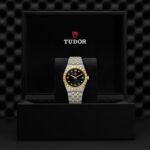 Corona di carica a vite con logo TUDOR. Acciaio rivestito da uno strato di oro giallo di 0,1 mm