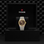 Corona di carica a vite con logo TUDOR. Acciaio rivestito da uno strato di oro giallo di 0,1 mm