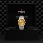 Corona di carica a vite con logo TUDOR. Acciaio rivestito da uno strato di oro giallo di 0,1 mm