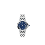 Corona di carica a vite in acciaio con cabochon blu trasparente