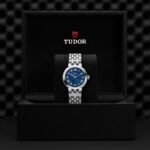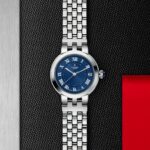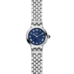 Corona di carica a vite in acciaio con cabochon blu trasparente