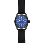 Cinturino ibrido in cuoio e caucciù con esclusive cuciture e chiusura pieghevole in acciaio con trattamento PVD nero
