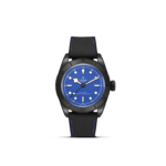 Cinturino addizionale in tessuto nero con banda blu e fibbia ad ardiglione in acciaio con trattamento PVD nero