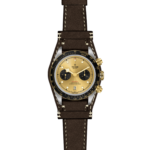 Cinturino in cuoio marrone con polsino rimovibile, con chiusura pieghevole e fermaglio di sicurezza