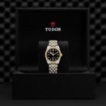 Prime maglie centrali in acciaio o in oro giallo massiccio. Le altre maglie centrali sono costituite da un’anima in acciaio rivestita da 0,2 mm di oro giallo. Chiusura pieghevole TUDOR “T‑fit” con fermaglio di sicurezza. Il logo sul fermaglio è realizzato in oro giallo massiccio