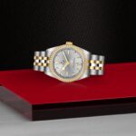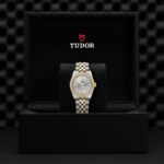 Prime maglie centrali in acciaio o in oro giallo massiccio. Le altre maglie centrali sono costituite da un’anima in acciaio rivestita da 0,2 mm di oro giallo. Chiusura pieghevole TUDOR “T‑fit” con fermaglio di sicurezza. Il logo sul fermaglio è realizzato in oro giallo massiccio