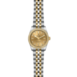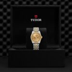 Prime maglie centrali in acciaio o in oro giallo massiccio. Le altre maglie centrali sono costituite da un’anima in acciaio rivestita da 0,2 mm di oro giallo. Chiusura pieghevole TUDOR “T‑fit” con fermaglio di sicurezza. Il logo sul fermaglio è realizzato in oro giallo massiccio