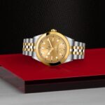 Prime maglie centrali in acciaio o in oro giallo massiccio. Le altre maglie centrali sono costituite da un’anima in acciaio rivestita da 0,2 mm di oro giallo. Chiusura pieghevole TUDOR “T‑fit” con fermaglio di sicurezza. Il logo sul fermaglio è realizzato in oro giallo massiccio