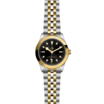 Prime maglie centrali in acciaio o in oro giallo massiccio. Le altre maglie centrali sono costituite da un’anima in acciaio rivestita da 0,2 mm di oro giallo. Chiusura pieghevole TUDOR “T‑fit” con fermaglio di sicurezza. Il logo sul fermaglio è realizzato in oro giallo massiccio