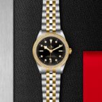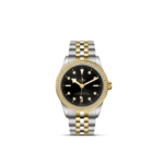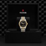 Prime maglie centrali in acciaio o in oro giallo massiccio. Le altre maglie centrali sono costituite da un’anima in acciaio rivestita da 0,2 mm di oro giallo. Chiusura pieghevole TUDOR “T‑fit” con fermaglio di sicurezza. Il logo sul fermaglio è realizzato in oro giallo massiccio
