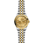 Prime maglie centrali in acciaio o in oro giallo massiccio. Le altre maglie centrali sono costituite da un’anima in acciaio rivestita da 0,2 mm di oro giallo. Chiusura pieghevole TUDOR “T‑fit” con fermaglio di sicurezza. Il logo sul fermaglio è realizzato in oro giallo massiccio