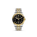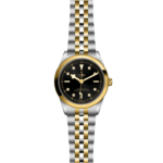 Prime maglie centrali in acciaio o in oro giallo massiccio. Le altre maglie centrali sono costituite da un’anima in acciaio rivestita da 0,2 mm di oro giallo. Chiusura pieghevole TUDOR “T‑fit” con fermaglio di sicurezza. Il logo sul fermaglio è realizzato in oro giallo massiccio