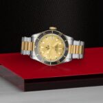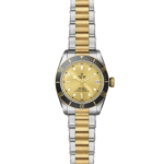 Corona di carica a vite con incisa la rosa TUDOR laccata nera e con tubo della corona in alluminio anodizzato nero. Acciaio rivestito da uno strato di oro giallo di 0,3 mm