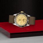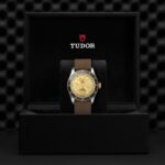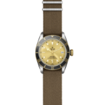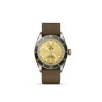 Corona di carica a vite con incisa la rosa TUDOR laccata nera e con tubo della corona in alluminio anodizzato nero. Acciaio rivestito da uno strato di oro giallo di 0,3 mm