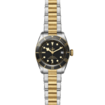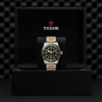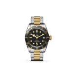 Corona di carica a vite con incisa la rosa TUDOR laccata nera e con tubo della corona in alluminio anodizzato nero. Acciaio rivestito da uno strato di oro giallo di 0,3 mm