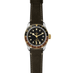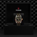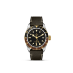 Corona di carica a vite con incisa la rosa TUDOR laccata nera e con tubo della corona in alluminio anodizzato nero. Acciaio rivestito da uno strato di oro giallo di 0,3 mm