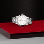 Corona di carica a vite in acciaio con il logo TUDOR in rilievo
